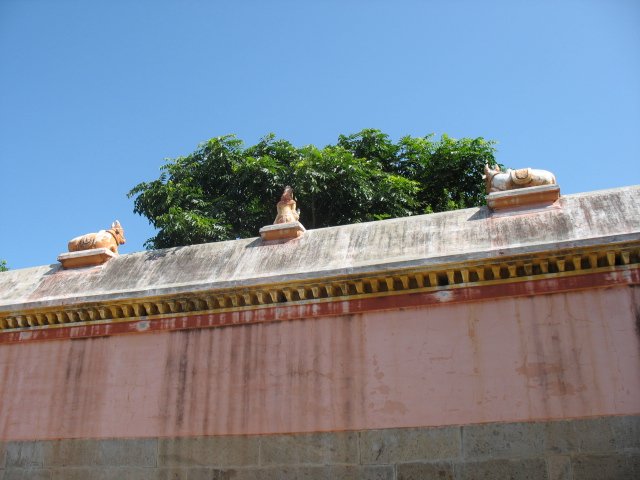 Temple, the little openings at the top of the compound walls surrounding