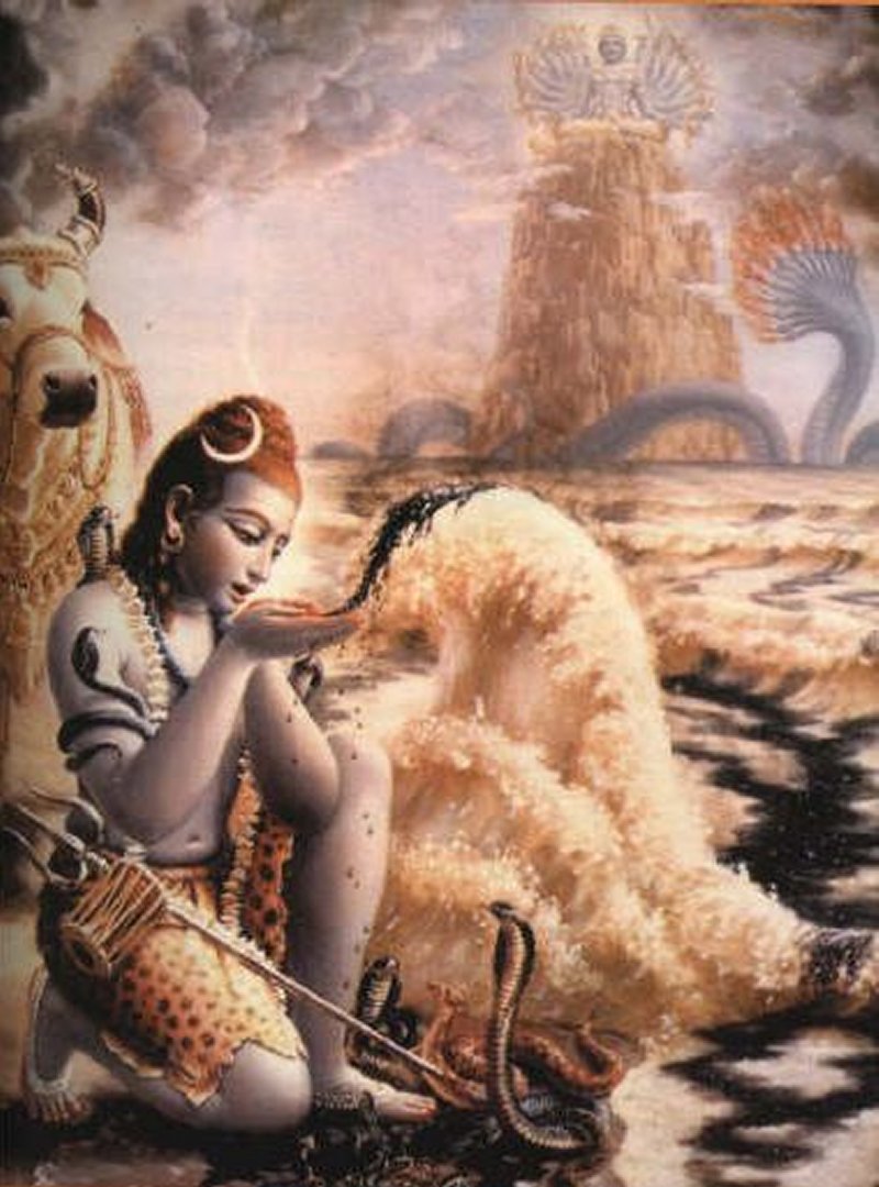 18 When the host of the gods, Seeing the poison hala arise from the ocean of milk, Trembled with fear and ran to him in great confusion, Crying aloud for succour, He stood affording his protection, for all the world to know; Lord Sonagiri, whose love for his devotees is ever unfailing.