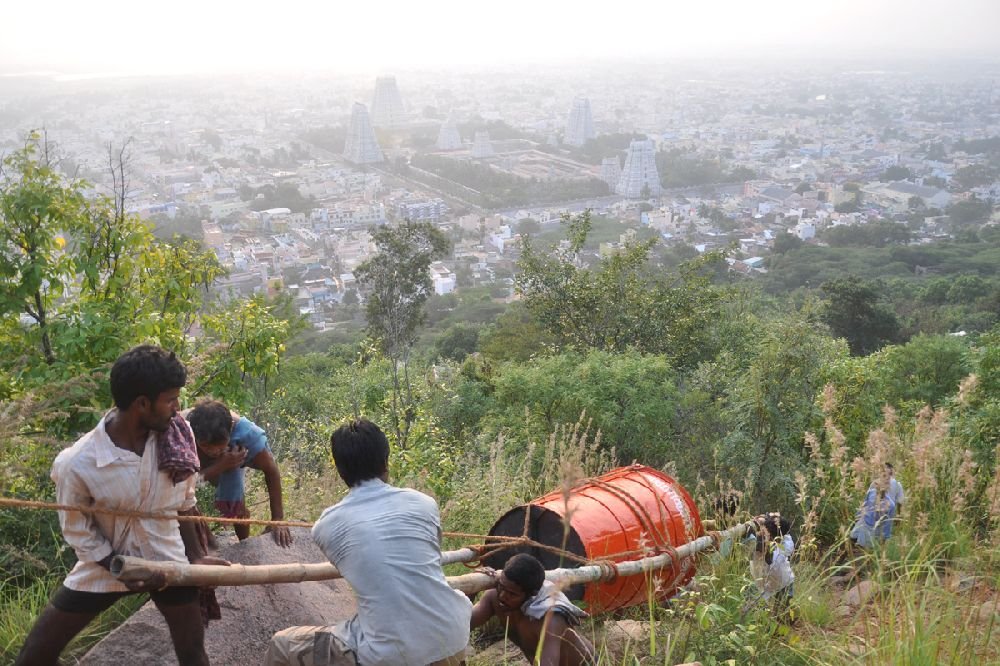 Nowadays, the pot is carried up Arunachala a few days before Mahadeepam.