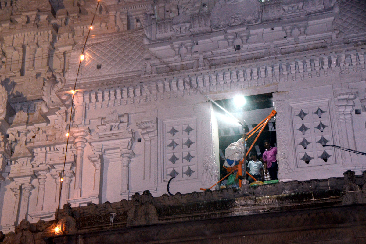 mandapam (main temple hall) was cleaned. The pillars of the central