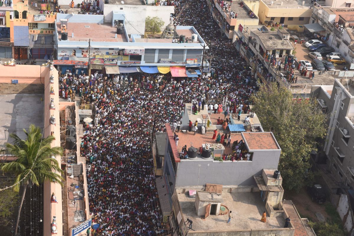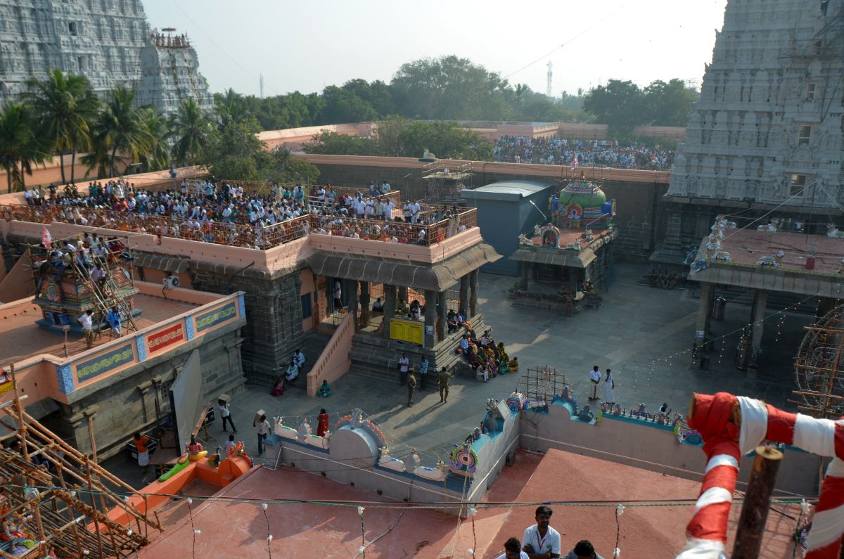 Taking vantage point inside 3rd Prakaram. Crowd in background are watching ceremony on TV in 4th Prakaram