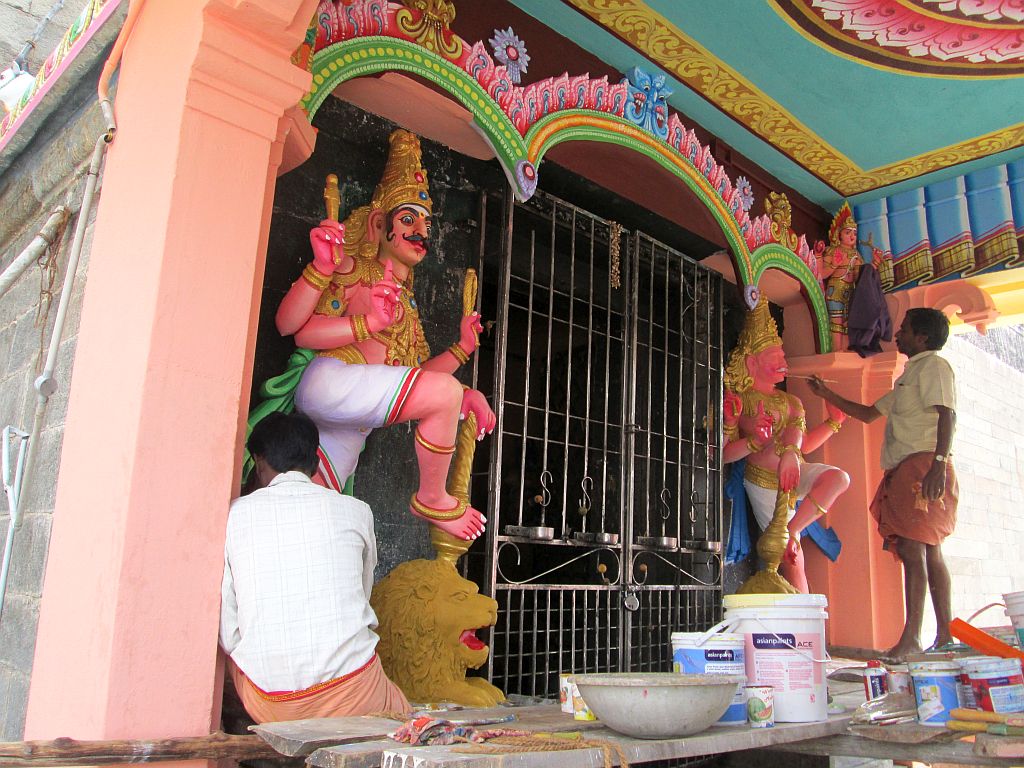 Statues around both Theerthams painted