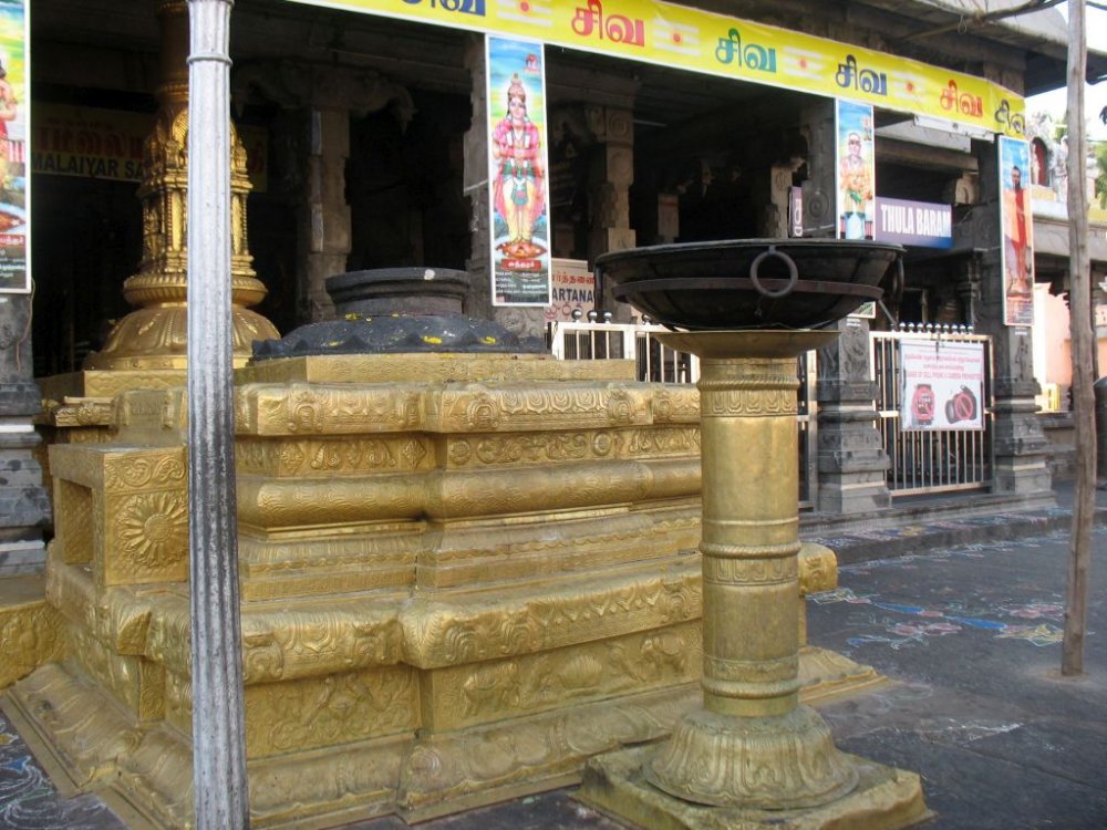 Opposite this mandapam, there is the Bali Peedam (sacrificial altar), Nandi and the Flag Staff (dwajasthambam).
