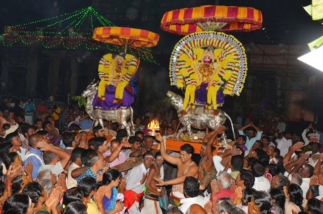 Processions occur both day and day inside the Temple and around the outside perimeter of Arunachaleswarar Kovil.