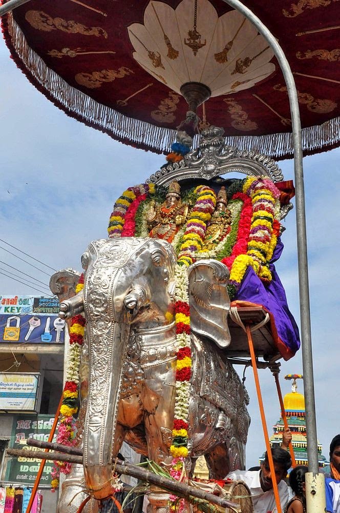 2014 Deepam Festival. Day Six - Morning: Elephant with 63 Nayanars