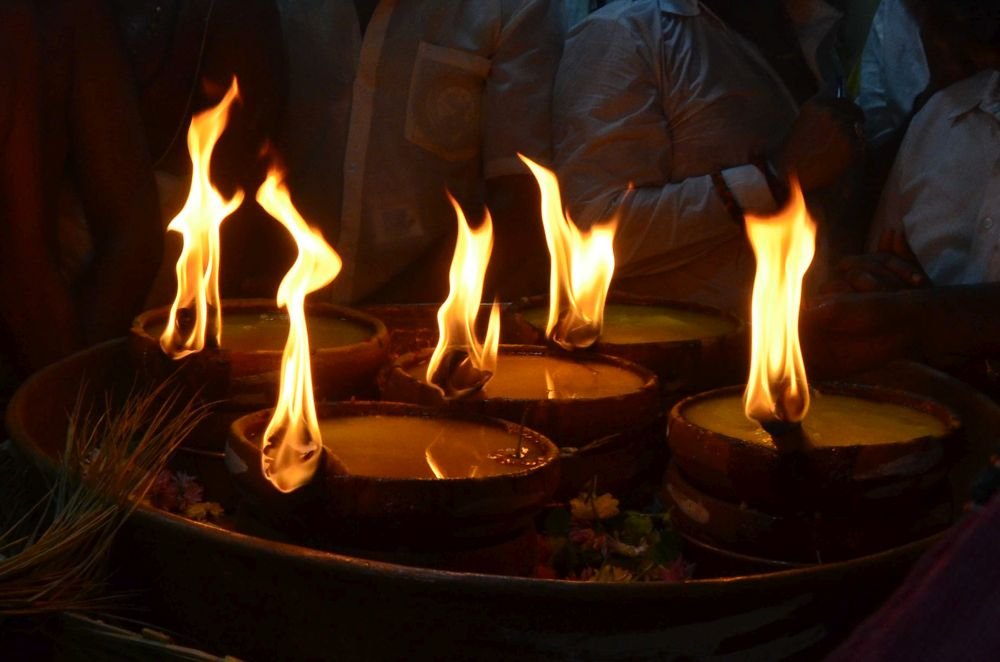 Indian festival of Karthigai Deepam officially begins. A single flame is