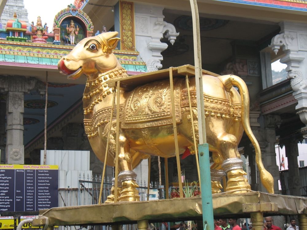 The golden Rishaba was presented to the Temple by a devotee in 2015, at a