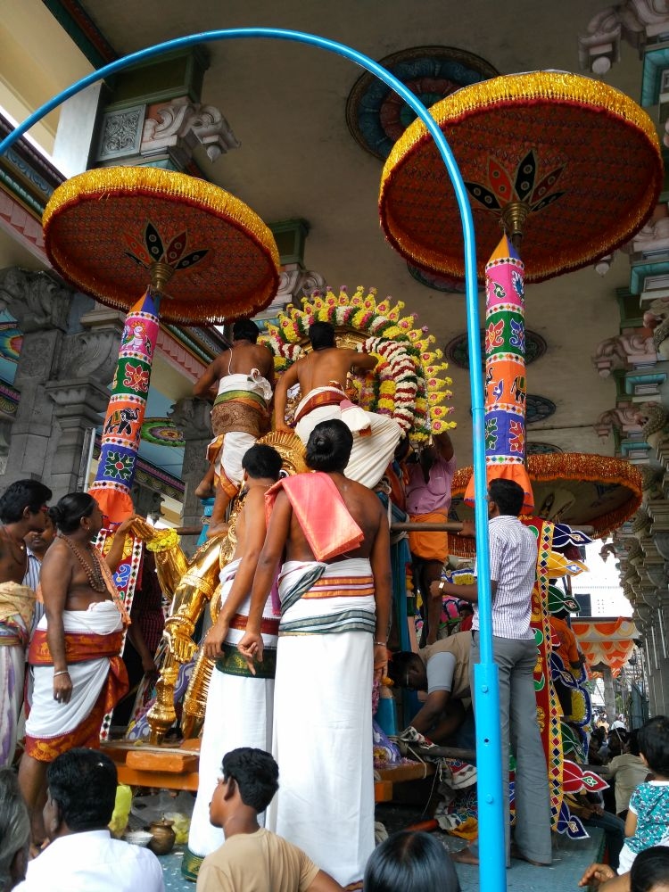 Carrying the Lord on palanquin through Temple