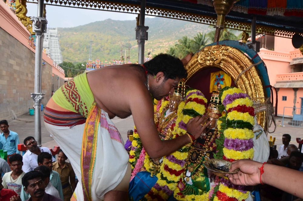 Brahmin priests adorning the Lord