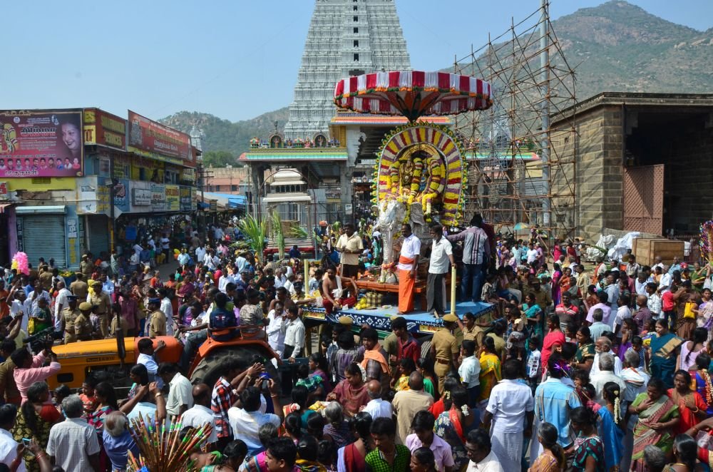In the first photograph Lord Arunachaleswarar is carried from the front