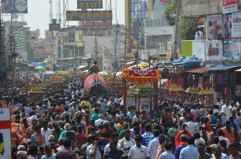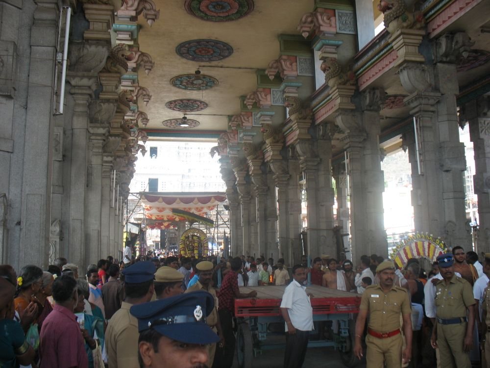 of the Alankaram Mandapam across Car Street to the Teertham at corner of