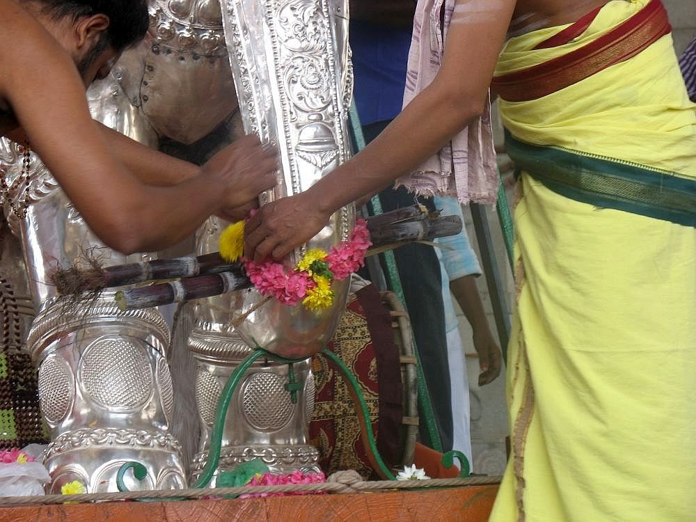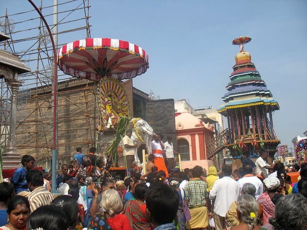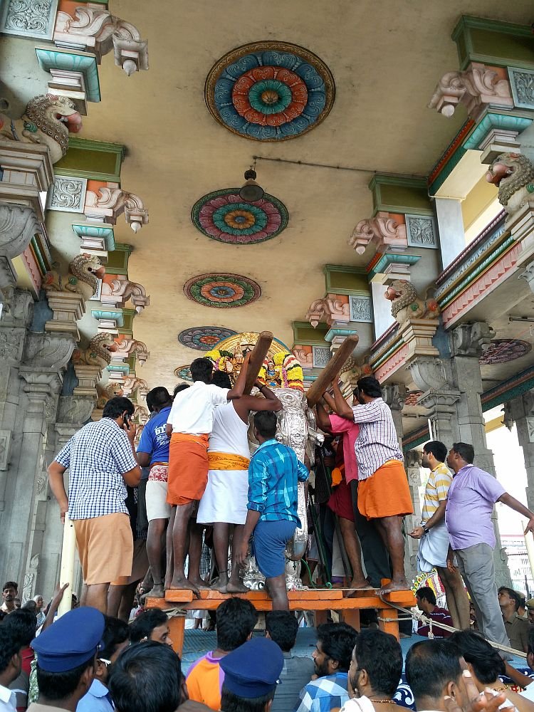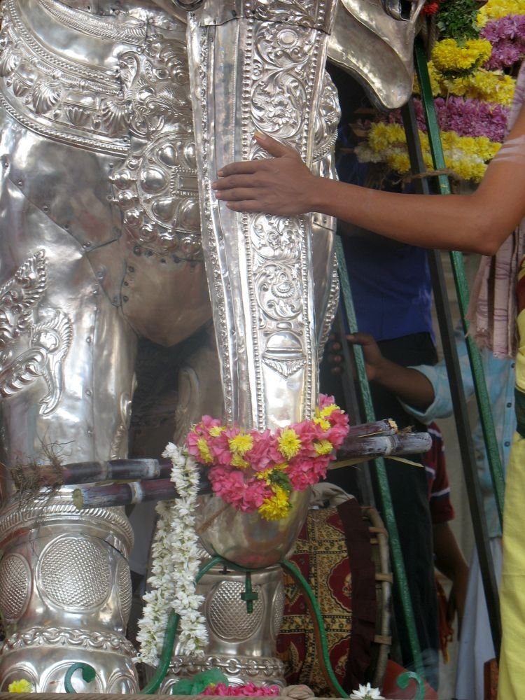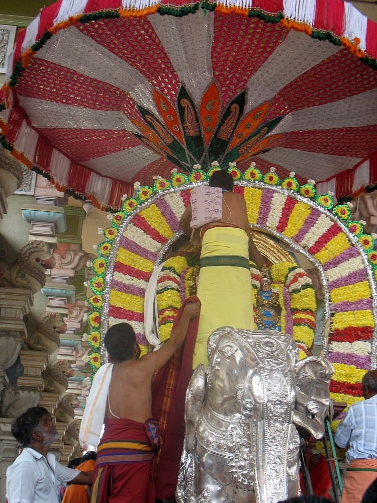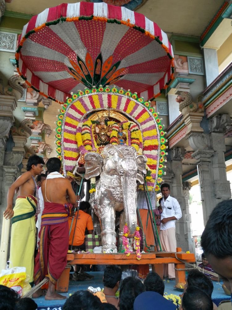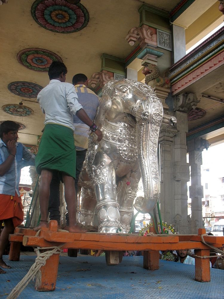 Below photographs shows the sequence of Lord Chandrasekhara being mounted on his Silver Elephant vahana