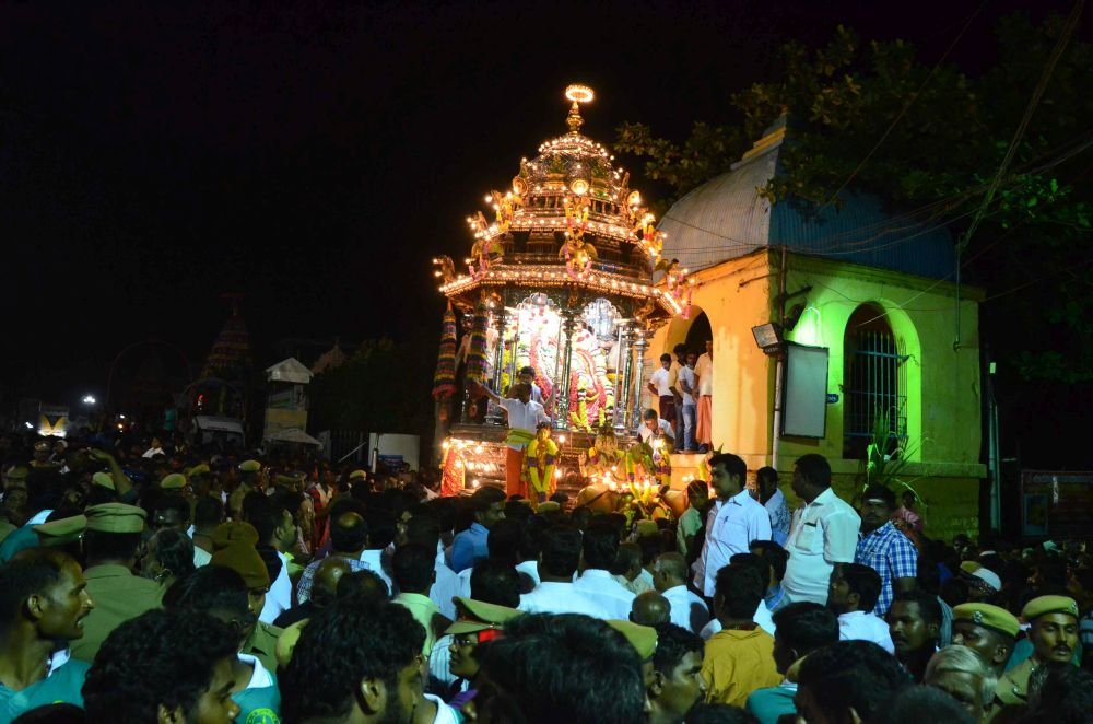 Lord carried on palanquin from temple to Alankaram Mandapam
