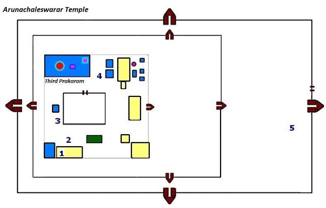 Below is a Map of the Third Prakaram of the Temple showing the sequence