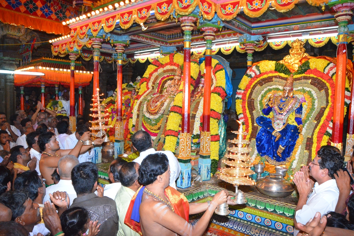 1. The beginning spot is at the back plinth in the Kalayana Mandapam. First Aarti.