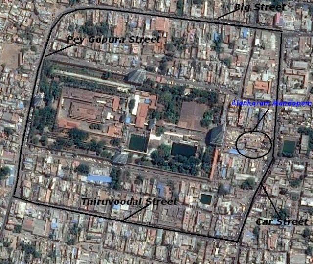 Mada Veedhis. Starting from the Alankaram Mandapam (in front of the Raja