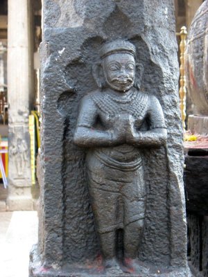 And upon one of the columns of the Nandi platorm is a sculpture of King Vallalan.