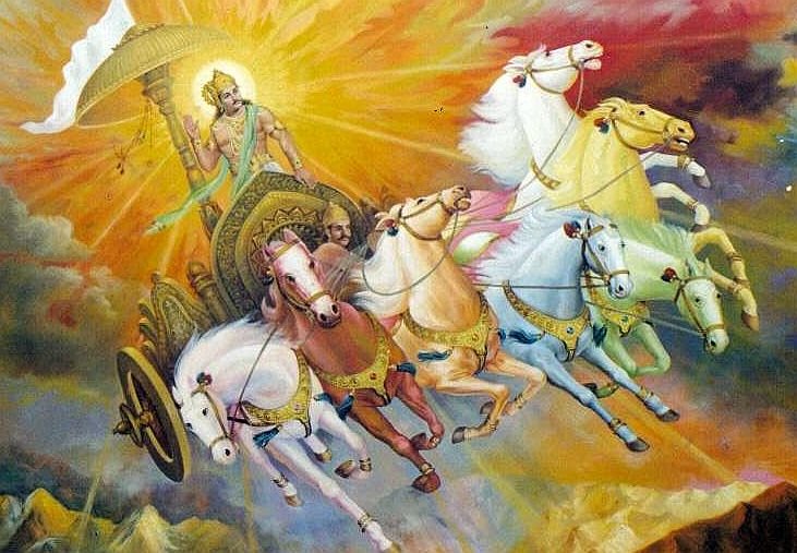 Surya, the Sun, is God incarnate in solar form, a glorious, shining