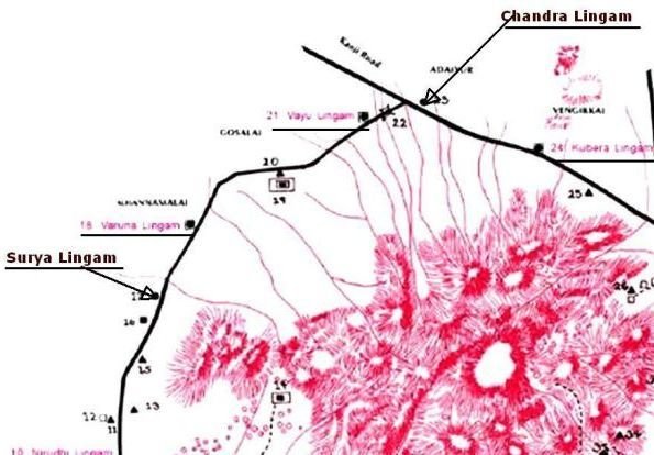 (Asta Lingams). Each of these Shrines are located at the four cardinal