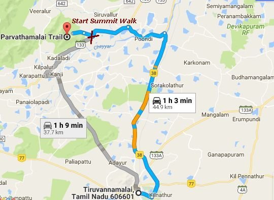 Many arrive at Parvathamalai Hill by bus or car via Highway 133 or