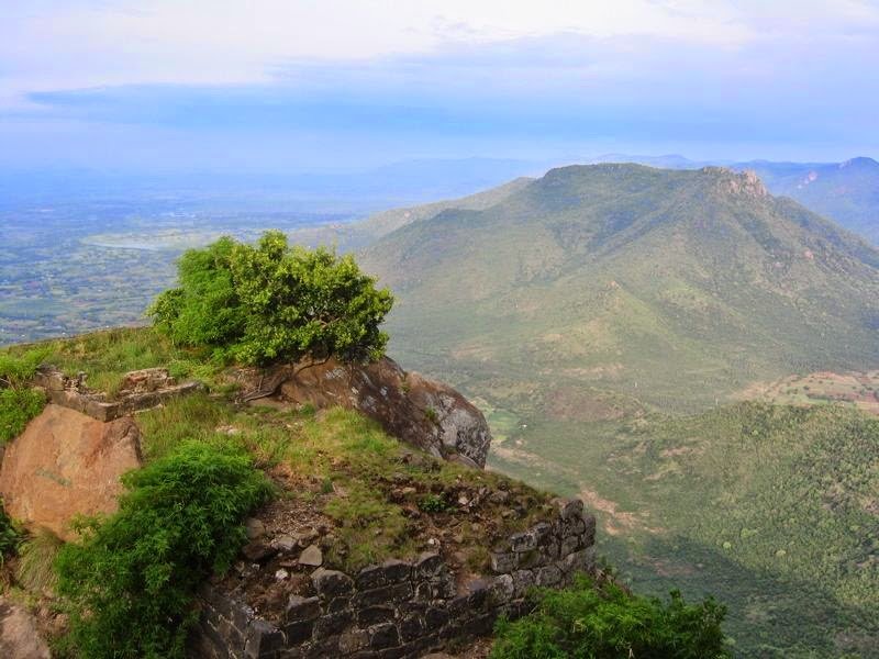 The summit of Parvathamalai overlooks the ruins of what is believed to